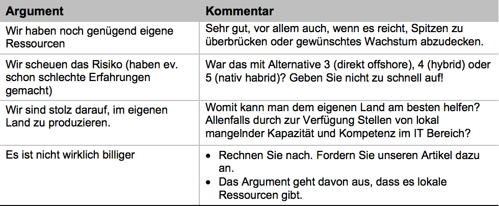 In unserer Tätigkeit treffen wir drei Hauptgruppen von Gründen, nicht Richtung Nearshore oder Offshore zu gehen: